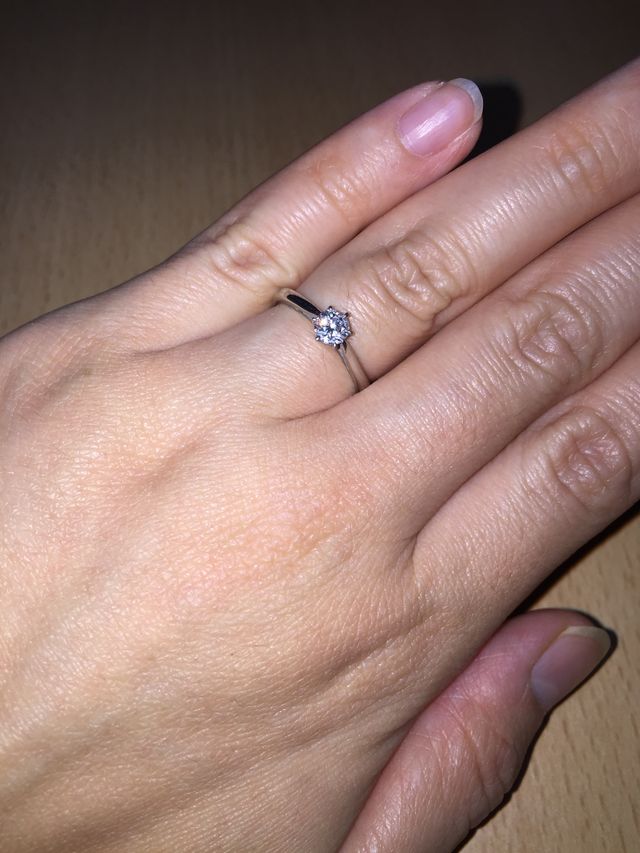 特別な感じがしたので、ダイヤのカットがハートに見えるように加工されたタイプを選びました。デザインはシンプルで、リングにダイヤが1つついている王道のタイプでした。婚約指輪なので、つけていても飽きがこないデザインが良かったです。