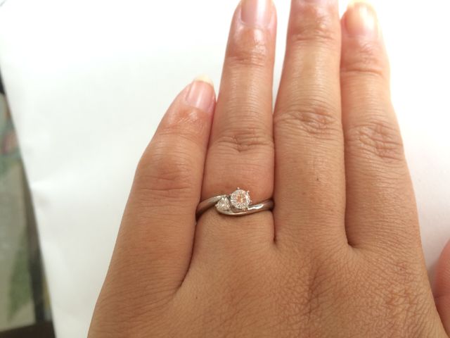 指が太かったので、細めに見える波打ったデザイン(土台)が気に入りました。また、ダイヤモンドはお店から異なるグレードのものをいくつか提示されました。人生一度きりのものなので、その中から石の色、輝き、カット、対称性が最高のものにしました。メインのダイヤの隣にハート型のダイヤが添えてあるのも素敵です。