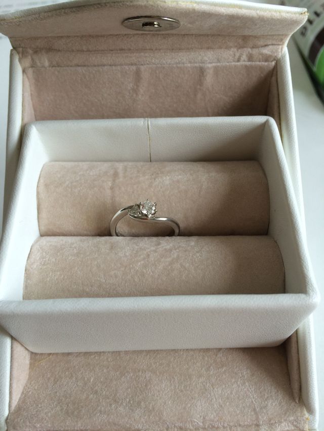購入時に有名ブランドの指輪もいくつか候補にありましたが、このサイズのダイヤを購入しようと思うと費用が高額になってしまうので、ノーブランドにしました。