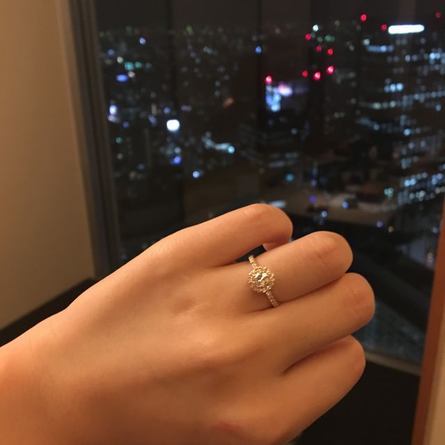 華奢なリングに大きいダイヤのエンゲージリングが、日本人の指によく似合います。これが最大の決め手です。ダイヤの質もとてもよく、綺麗にカットされているので、光が射し込む度にキラキラして、つける度にワクワクする宝物です。