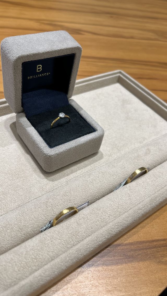 結婚指輪はもう少し悩む予定だったのですが、婚約指輪と一緒に付けて違和感のないものがその場で見つかったので同じブランドで決めました。