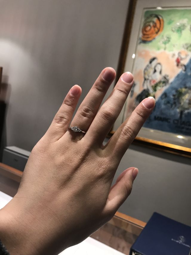 メレダイヤがついたものがよかったので、このデザインに決めました。ダイヤモンドにこだわりたかったので、ネットが中心の店ですが、実際店舗にも足を運んで話を聞き、安心して買えるところもポイントでした。大変満足しています。