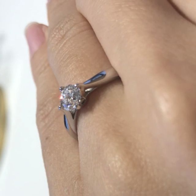 シャープなフォルムのラインが上品な印象があるリングです。基本的にダイヤモンドの存在感を際立たせたかったので、それを基準にリングを選びました。ダイヤモンドのグレードは色々と選べるので実際に自分の指にマッチするものに決めましたね。