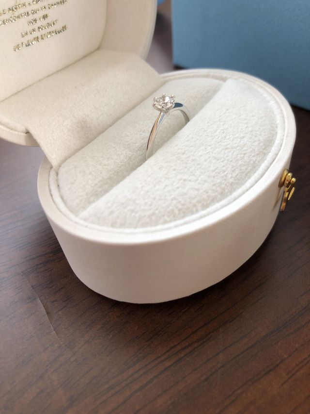 彼がプロポーズの為に選んで購入してくれていました。何店舗か見てまわって、シンプルなものを探していたそうです。