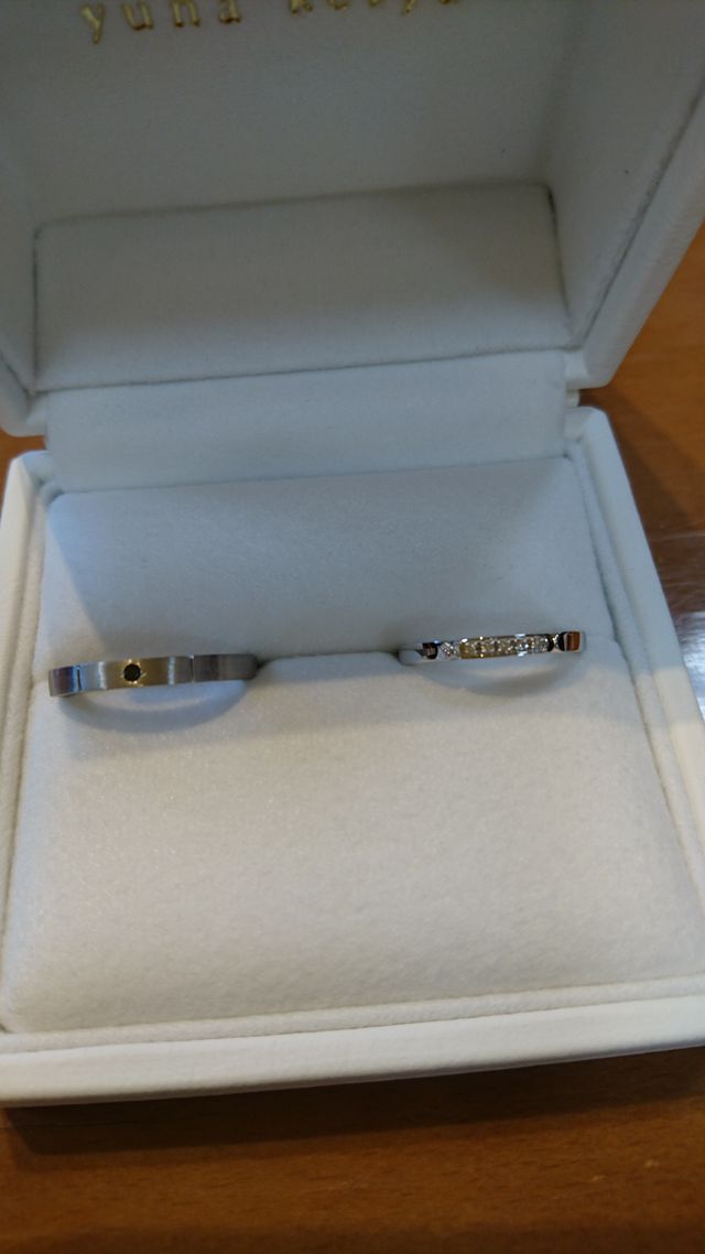 結婚20周年の記念で、夫婦でペアリングを選びに来店させていただき、男性用のリングのブラックカラーのダイヤモンドが、なかなか無いとスタッフさんからお聞きして、シンプルなデザインがとても素敵で、元々しているマリッジリングとの重ね着けにしっくり来たのが、決め手になりました。