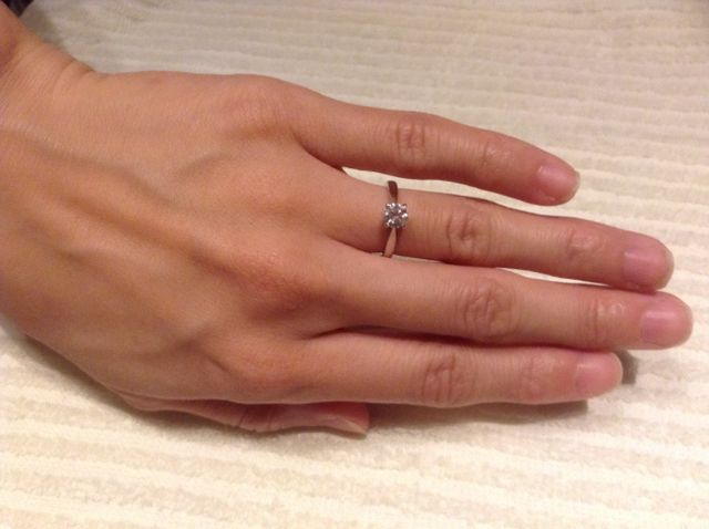 同じ大きさのダイヤで比較すると、質も良いのに他のブランドより非常にお手頃に購入できました。4つの立て爪でダイヤが浮かび上がったようなデザインなので、ダイヤが大きく見えます。シンプルなのでどんな服装とも合わせられるし他の指輪との重ねづけもできるので、普段使いできるところも気に入っています。
