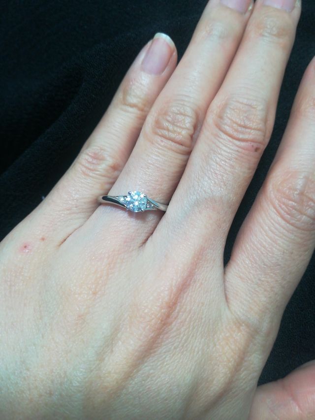 カラットが大きく(0.4カラット)、カットカラークラリティーすべてが最上位のものを頂きました。