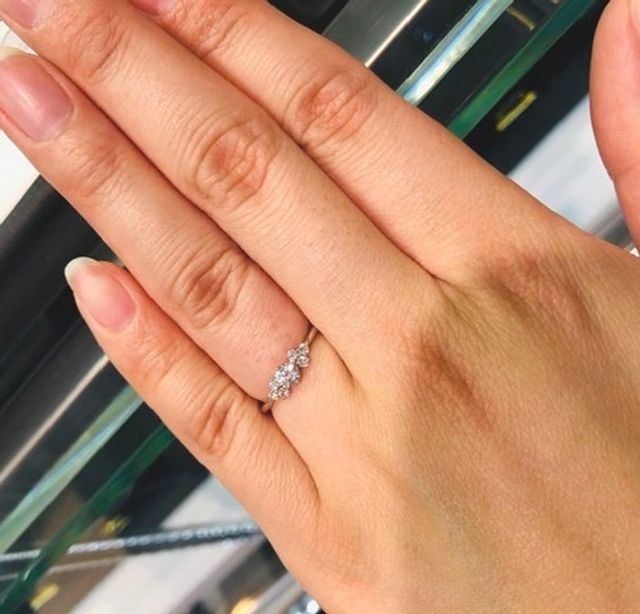 最初は中央に一つダイヤがあるリングを探していましたが、色々と試着するうちにサイドにメレダイヤが付いており華やかな印象のあるリングの方が気に入りました。ダイヤモンドの大きさは充分ですし、輝きが綺麗で高品質です。