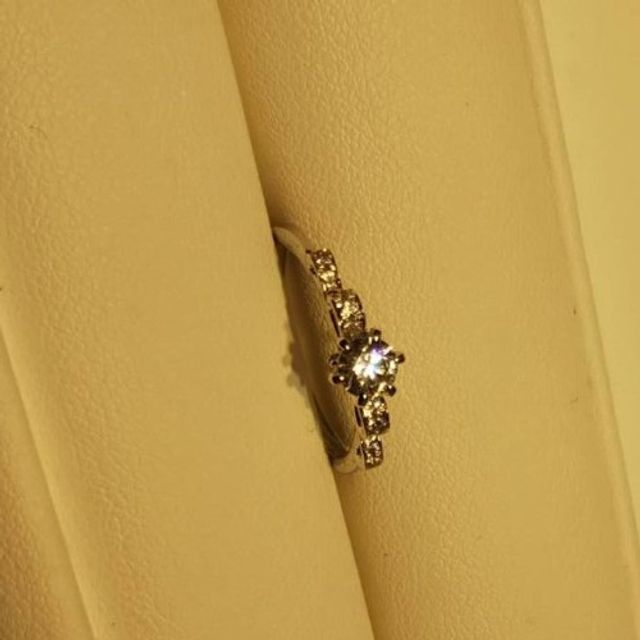個性的で華やかなデザインを探していてこのリングを見つけました。あまり他で見かけないデザインで素敵でしたし、センターのダイヤモンドの輝きは綺麗で予算の範囲内でした。つけ心地的にも特に問題はなかったですし、装飾の部分の造りもしっかりとしています。