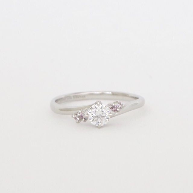 あまり事前に調べたりせずにお店に行ってしまいました。指が細くないので、指が綺麗に見えるデザインがいいな〜位の気持ちで探しに行きました。指輪の色や追加で宝石を付けられるなど、自分で決められる部分が多く、大変悩みましたが、婚約指輪らしいプラチナにしました。追加で付けられるピンクダイヤモンドが映えてて綺麗です。