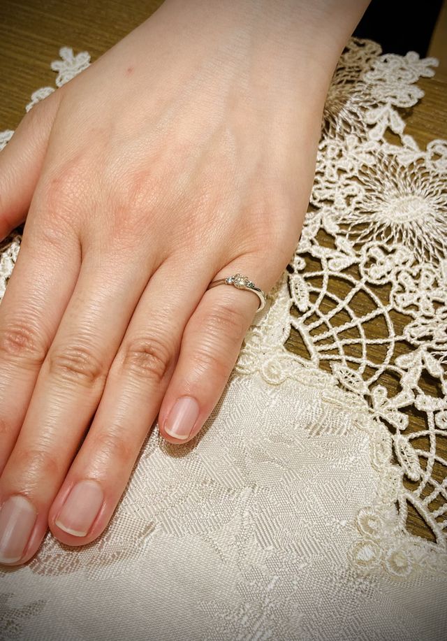 婚約指輪も日常的に着けられるものがよかったので、薬指ではなくピンキーリングを探していました。エンゲージリング感もあるピンキーリングはなかなか見つからなかったので、オーダーメイドできるこちらでお願いすることにしました。