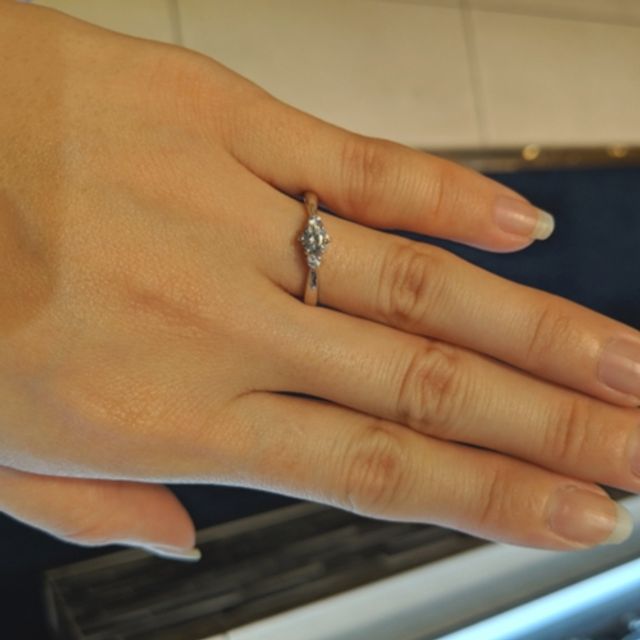 元々イメージしていたリングは可愛すぎない感じで基本的にはシンプルなものです。ダイヤモンドのサイズなど気になる部分が多かったのですが、こちらのブランドで遂に発見しました。着けてみると程よい存在感でダイヤモンドの輝きも上品です。