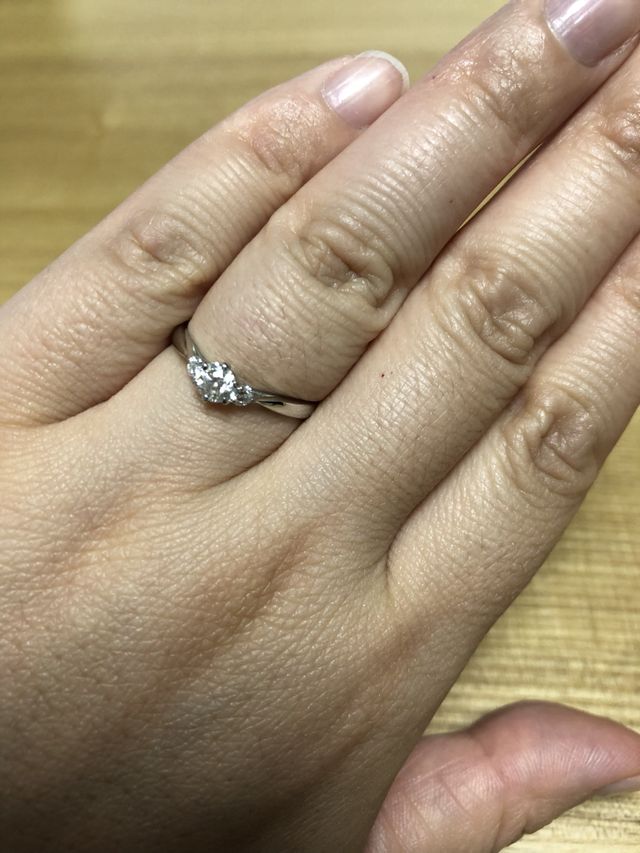 指輪は、彼女が気に入ったデザインに変更することも可能だったので、プロポーズした後一緒に来店しました。アフターケアは永久保証です。ダイヤの鑑定証もしっかりついていました。指輪のサイズを直してもらったり、刻印を一緒に考えていれてもらうことができました。
