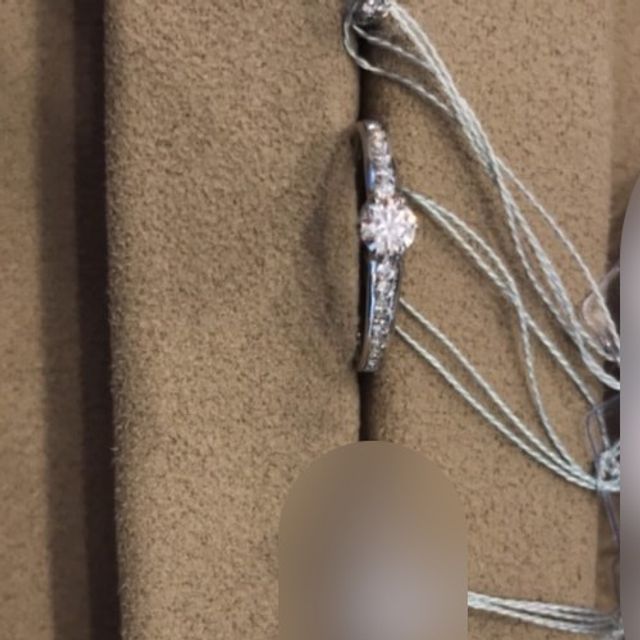 センターのダイヤモンドだけでなくサイドに埋め込まれたメレダイヤもしっかりとした輝きで存在感が十分ですね。強度的にも問題なく金属部分の質感は滑らかでつけ心地が良いです。華やかな存在感ですが、それほど幅が広くないため上品な印象もあります。