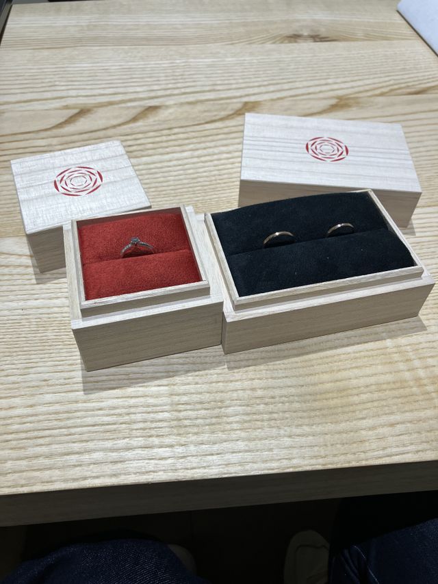 出雲結のコンセプトとデザインが決め手でした。また、対応してくださったスタッフの方も丁寧で素晴らしかったです。指輪のデザインもシンプルかつ繊細で自分達の感性と一致する部分が多くあり、婚約指輪ならびに結婚指輪をこのブランドに決めました。