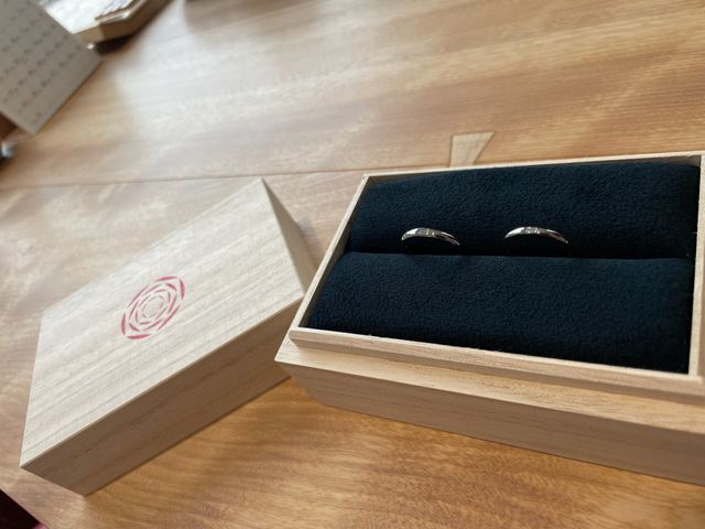 縁結びの出雲大社がある出雲のブランドで、一本一本職人が手作りで造る完全日本製。指輪ひとつひとつに想いが込められ、自分たちに照らし合わせて決めることができます。そこから更に形や素材、彫刻などが選べるので、二人だけの唯一無二な指輪ができます。完成した指輪を手に取ったとき、改めてその美しさに二人で感無量でした。