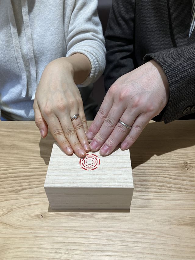 指輪選びも慣れておらず緊張のまま伺いましたが、静かで落ち着いたお店の雰囲気と優しいスタッフさんのお陰でじっくりと希望の指輪を形にすることが出来ました。