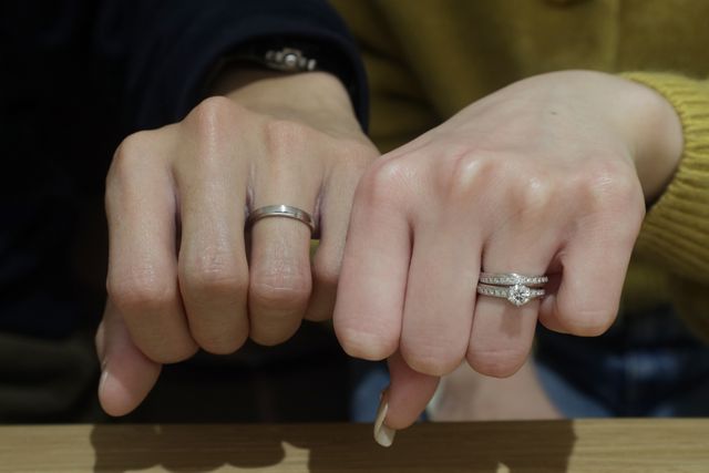 男性用の指輪が若干太いなと私達は感じたのでレディースのダイヤを抜いた指輪でマット加工を施しました。細かくデザインを決めれる点もよかったなと思っています。