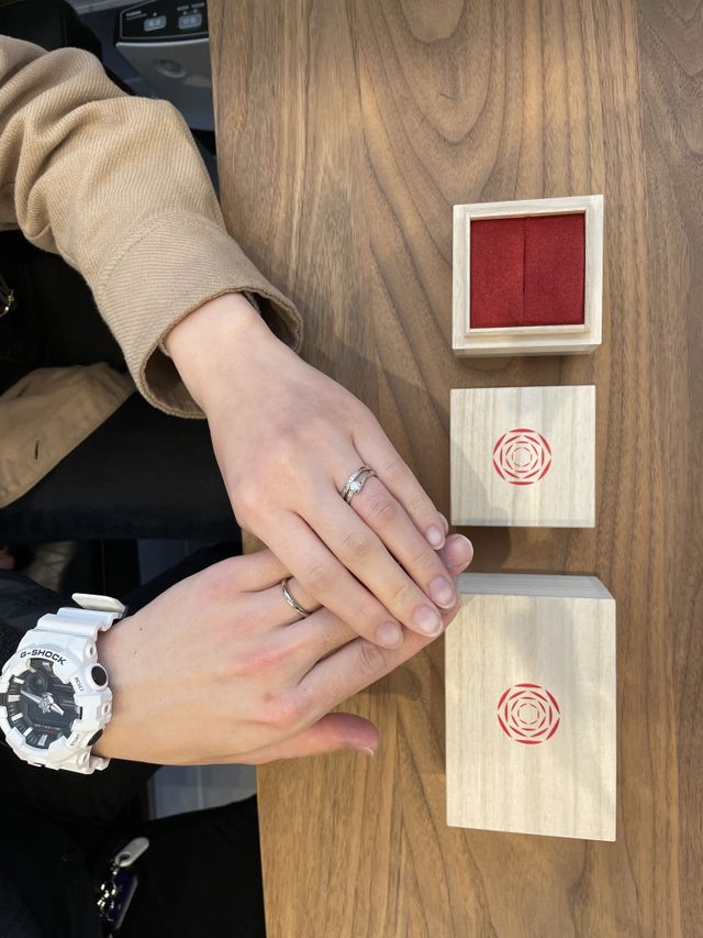 結婚指輪を探し始めた時に地元の島根県に出雲結さんがあることを知り、これも何かのご縁であり地元島根県の指輪を着けたいという思いが強くなり店舗に足を運ばせていただきました。