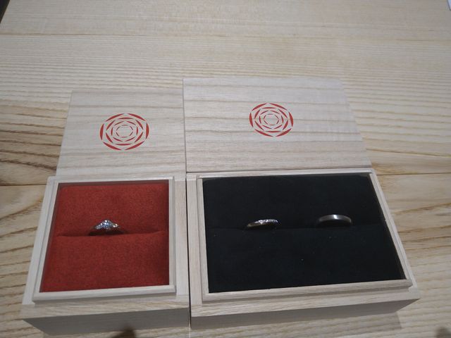 事前にレンタルリングでどれにしようか決めて店舗に行きました。決めていたものを実物で見たらやっぱりとても素敵で即決でした。デザインが決まってからも加工はどうしよう、内石は?刻印は?と夫が想像以上に楽しんで選んでくれて、決めるまでの時間もいい時間になりました。