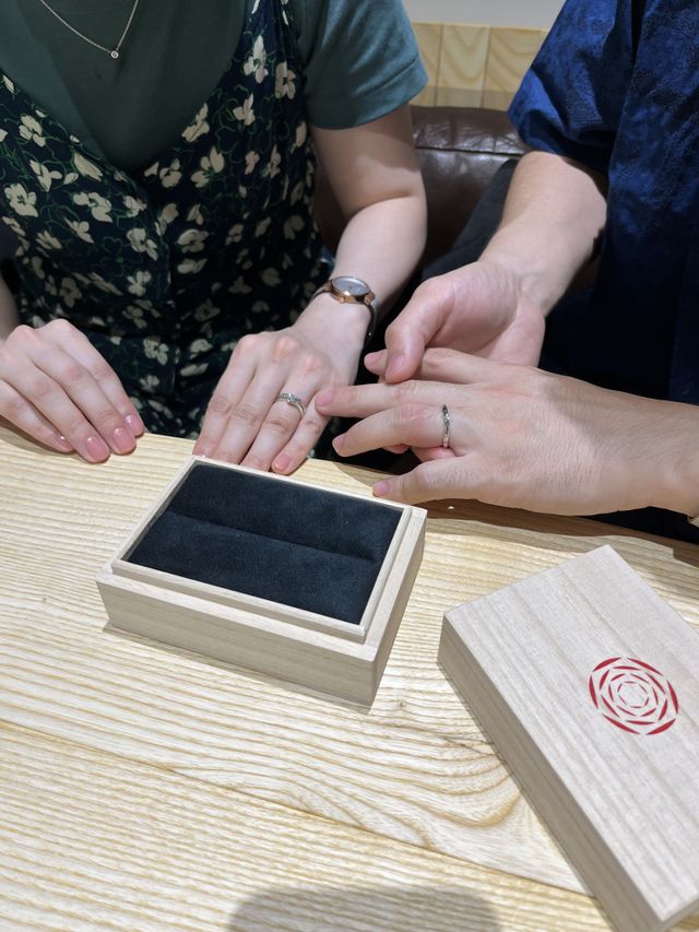 お店、指輪のコンセプト共に好みにピッタリでだったので、ほぼ即決で決めました。お店で取り扱っている指輪を全てご紹介してもらい、実際に全て試着した上で決めることができたので、疑問や不安が無くせたのも決め手の一つです。
