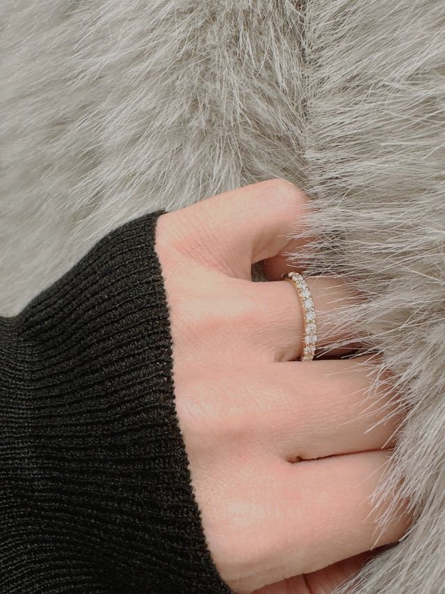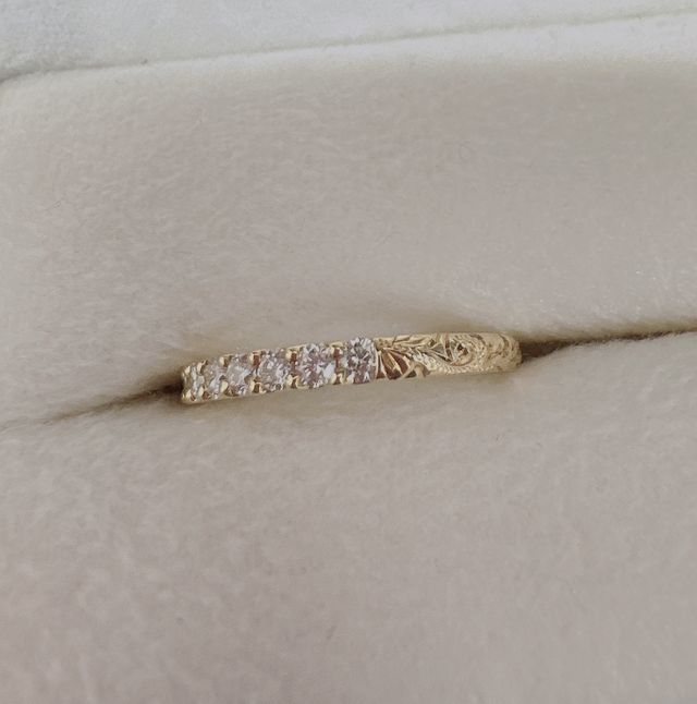 指輪の半周は憧れのダイヤモンドのハーフエタ。