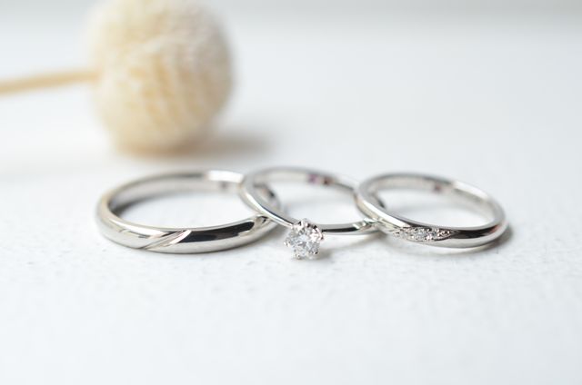 HPなどから予め好みのデザインの指輪の写真をいくつか保存して、それを一緒に見ていただきながらデザインを固めていきました。一番の決め手は価格で、予算25万円という希望で、結婚指輪と婚約指輪の3本を作ることができ、大変満足しております。しかも特に何かを妥協したわけではなく、むしろクリスマスの時期でキャンペーンが重なり、宝石も入りきれないほど施すことができました。デザインも上品でとても気に入っています。また、婚約指輪のダイヤもワンサイズアップしていただけて、存在感のある素敵な仕上がりとなりました。輝きも申し分なく、たまにつけるとキラキラしてて少し落ち着かないほどです(笑)。一緒に作れたことで、結婚指輪と重ね付けして楽しめるデザインにできたことも嬉しいです。シンプルで素敵な白いBOXまでつけていただけて、飾っておくだけでもテンションが上がります!