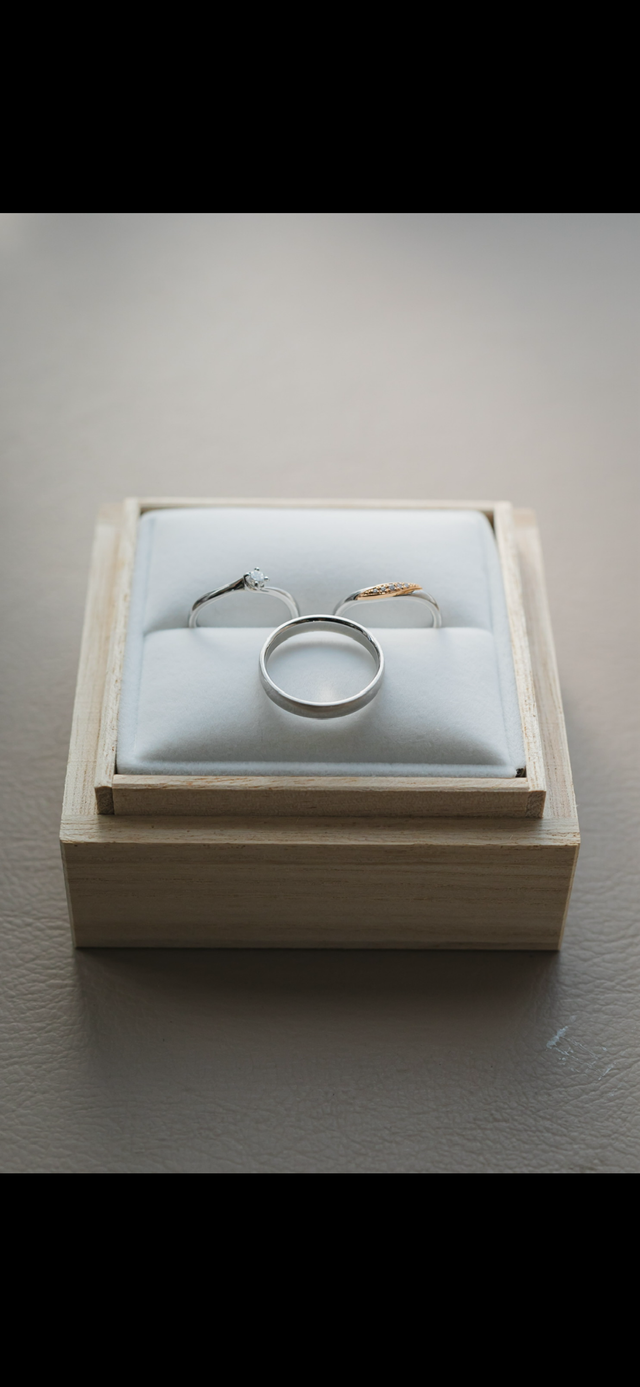 また、鍛造造りの指輪は直線のものが多いイメージでしたが、珍しく曲線造りやバイカラーのものもあるため、好みが全く違う夫婦ですが各々お気に入りのものを選ぶことができました。