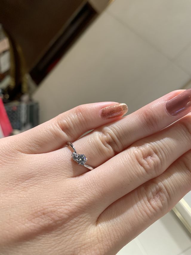 決めた指輪は、縁にも小さいダイヤが付いていることで中央のダイヤがより輝いて見えることが素敵だと思い決めました。