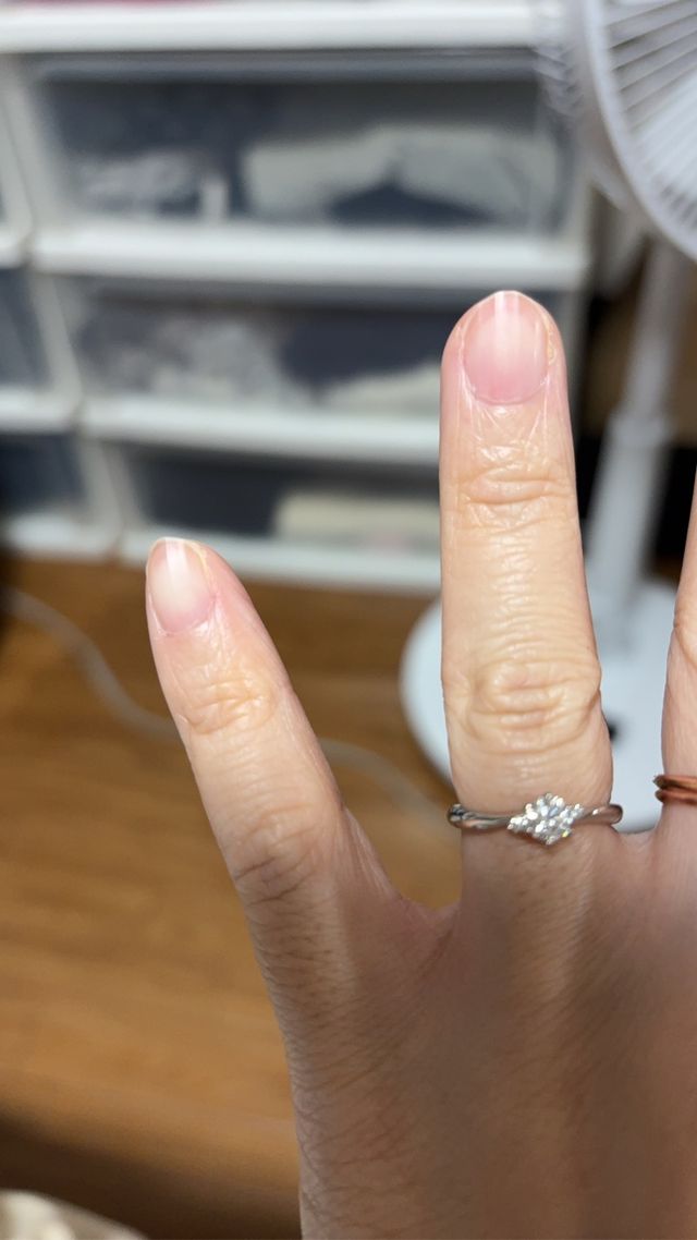 シンプルでかわいい。最初はもっとかわいいかわいいデザインのにしてたのですが、彼が、「ずっとキラキラしていてほしい」とこの指輪を薦めてくれました。ので、これにしました。結婚指輪との重ね付けも綺麗で惹かれました♡結婚指輪がとどくのが、とっても楽しみです✨✨