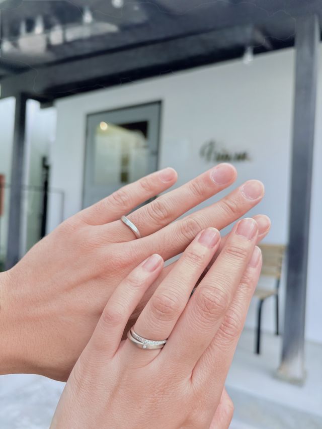シンプルでカジュアルさがありつつ、上品な仕上がりにしていただきました。また、自分たちの好きな質感、重ね付けできるデザイン、石がが主張しすぎないような雰囲気など、たくさんの願いを叶えてくださいました。