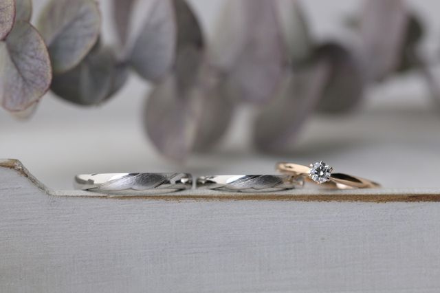 それぞれの名前や誕生月から、デザイナーさんにイメージしていただいてとても素敵な指輪になりました。色んな素材から選ぶことができるので、自分の指の形や肌色にあったものを相談しながら、選ぶことができました。世界で1組の指輪が出来てとても嬉しかったです。