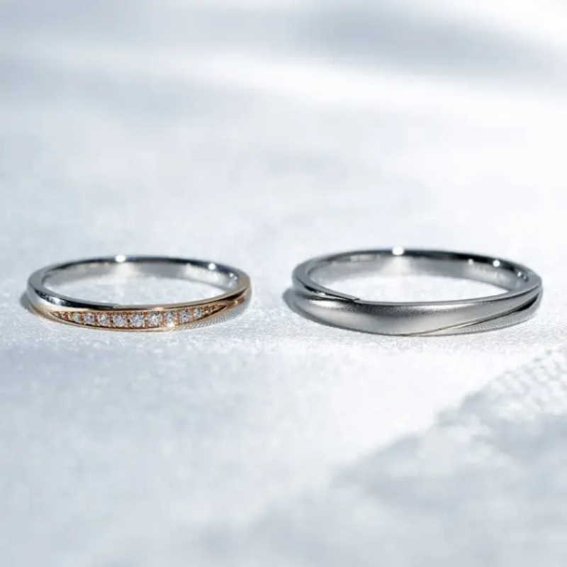 定番のプラチナ、イエローゴールド、ピンクゴールドに加えて、シャンパンゴールドでも作ることができます。