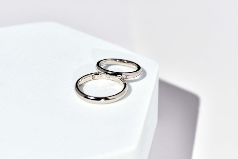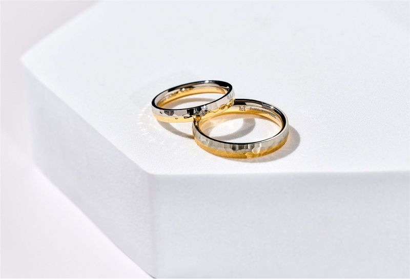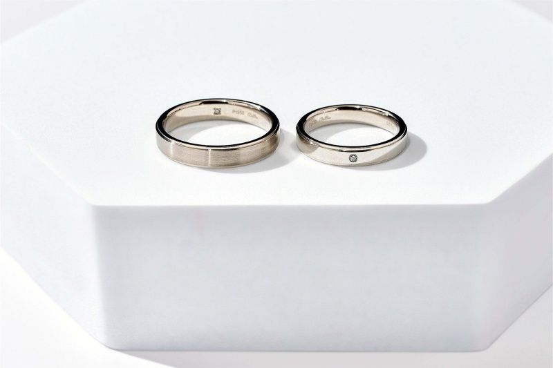 モアサナイトを使用した鍛造リング「鍛造ペアリングコレクション」。