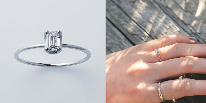スクエアエメラルドカットは、透明感のある大きな面ですっきりとしたきらめきを放ち、正方形になることによって愛らしい雰囲気になります。