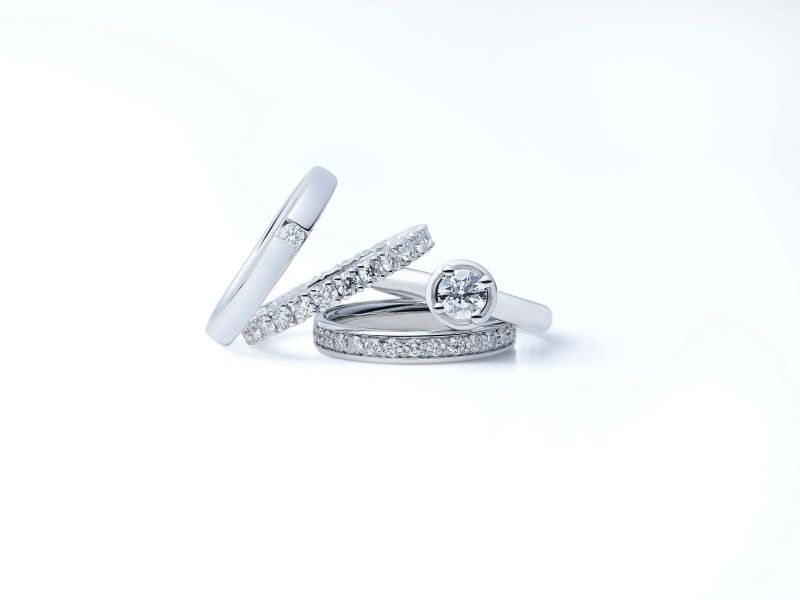 マリッジリングとエタニティリングが重ね付けできるデザインが揃っています。