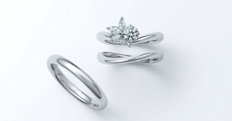 マリッジリングは「花雷」をシリーズで揃えるほか、「夕凪」を合わせるのもおすすめです。
