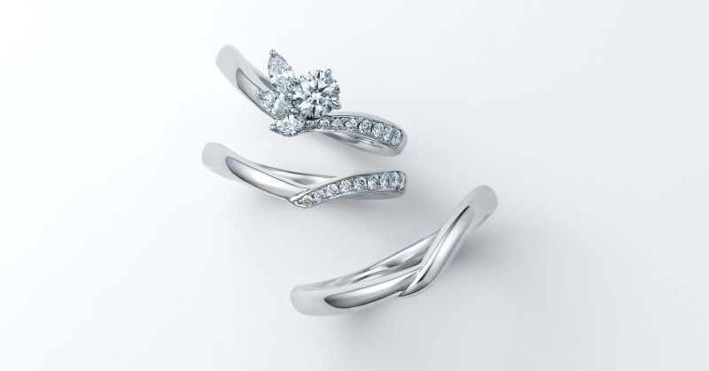 手を取り合い、舞うふたりを包む優しい風をイメージしたリングです。