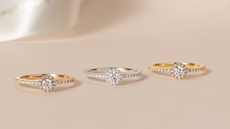 リングの素材は、定番のプラチナ、ファッション性の高いイエローゴールド、フェミニンなピンクゴールドの3種類のラインナップで、好みに合わせて選べます。