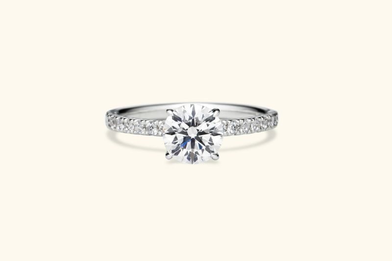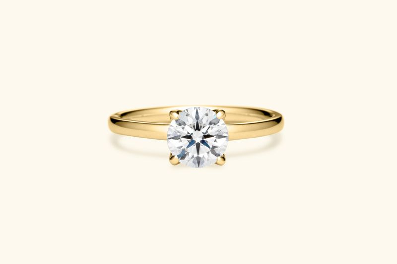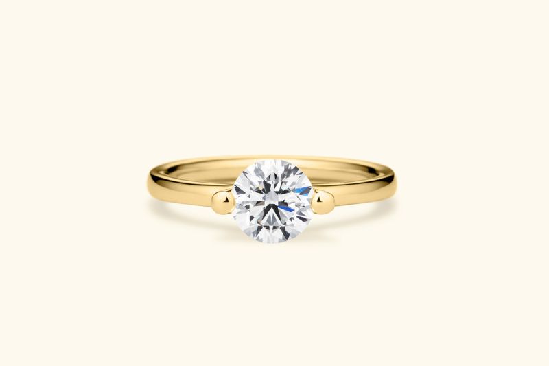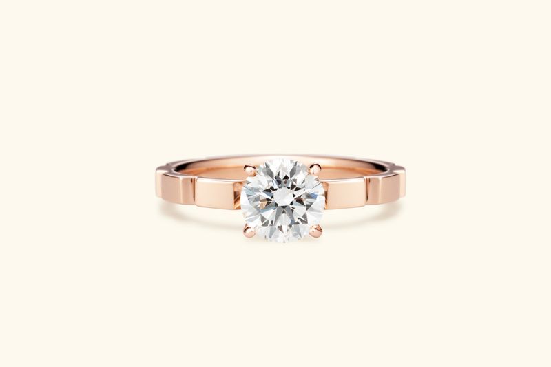 中央に0.5~1カラットの大粒の人工ダイヤをあしらい、高品質でクリアな美しさと、石の存在感を生かすミニマルなデザインが特徴。