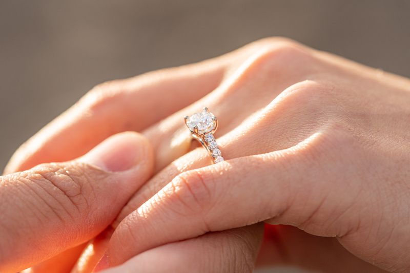 一粒のダイヤモンドがついた指輪の場合は、ジャストサイズや少しきつめのサイズをおすすめします。理由は、ゆるめサイズだとリングが回転し、中心がずれてしまうため。