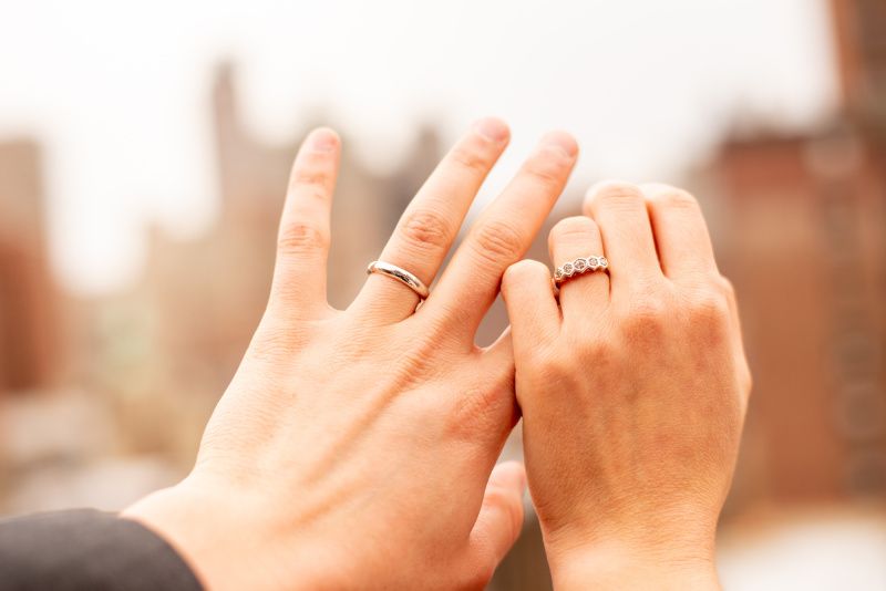 常につける前提の結婚指輪の場合、家事や日常生活で紛失しないためにややきつめが推奨されます。とはいえ、結婚後の体型変化を考えると、あえてゆるめを選択する人も多いよう。体質やライフスタイルに応じた選択が大切です。