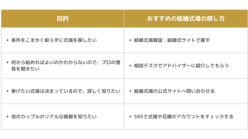 式場の探し方を4つピックアップしたので、下記の図も参考にしてみてください。