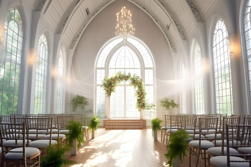 結婚式場によってバージンロードの長さは異なります。バージンロードが長ければ、ロングベールや裾が長いトレーンのドレスの美しさが引き立ちます。大切な人と腕を組んで過ごす時間が長くなるのも魅力ポイントです。