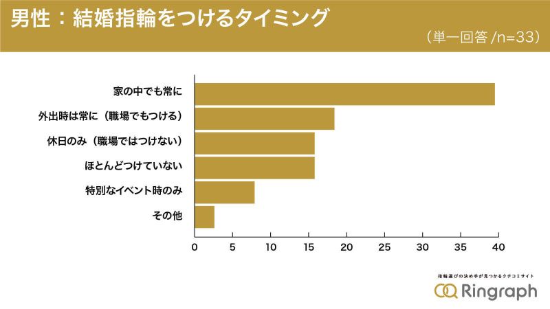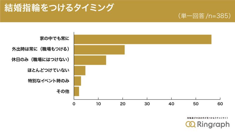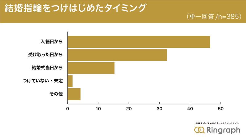 「結婚指輪をつけるタイミング」について伺ったアンケート結果がこちら。