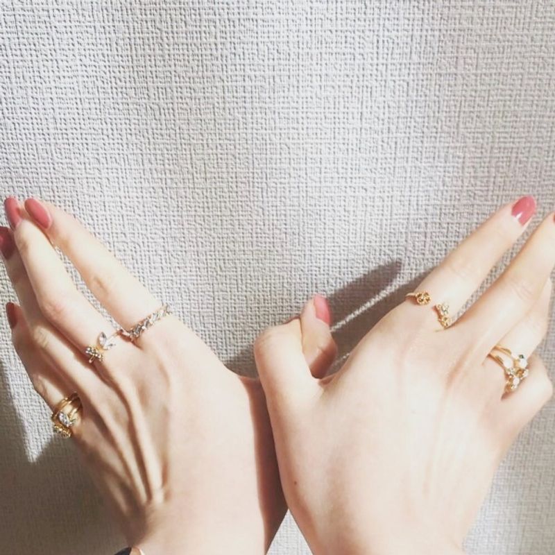 同じテイストのリングで統一されているので、たくさんつけてもまとまり感があり、素敵ですね!