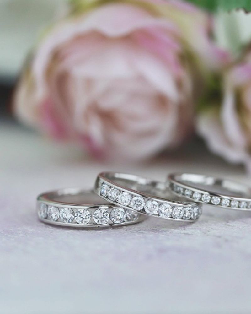 - 「エタニティリング」とはリングの周囲にダイヤモンドが留められたデザインのリング