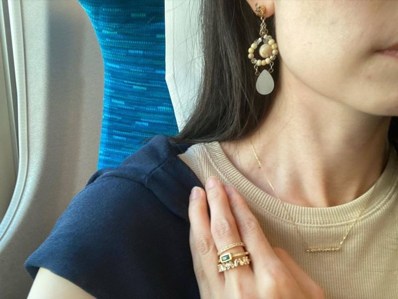 遊び心のあるリングを複数組み合わせてエタニティリングと重ね付けするコーディネート。人生の節目、さまざまなタイミングで自分の手元にくるリングをその日の気分で毎日身につけて楽しみましょう。エタニティリングはシンプルなためハンドメイドやブランドを問わずどんな組み合わせをしてもおしゃれに見せてくれます。