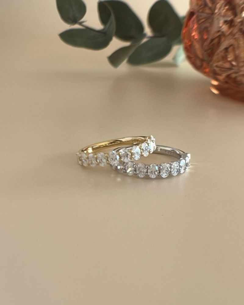 エタニティリングの中でもダイヤが全周しているものはフルエタニティ、半周のものをハーフエタニティと呼び、どちらもエンゲージリングやマリッジリングとして選ばれることが多いリングです。
