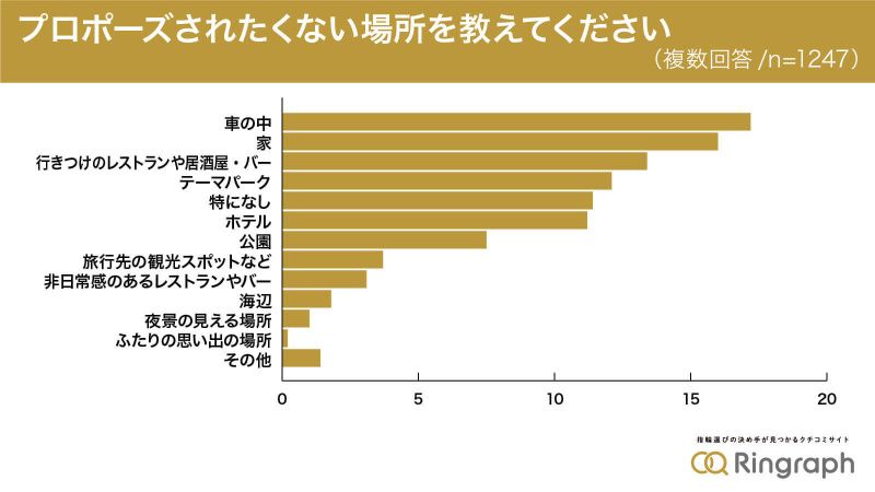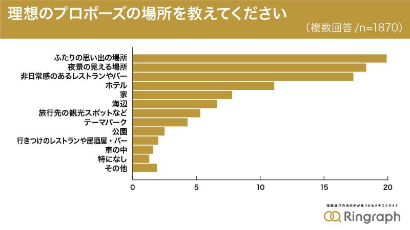 Ringraphで実施したプロポーズに関するアンケートから、理想のプロポーズの場所ランキングTOP5を発表します!